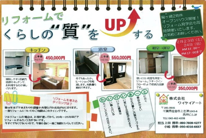 チラシ内容:オープンハウス、リフォームのご案内