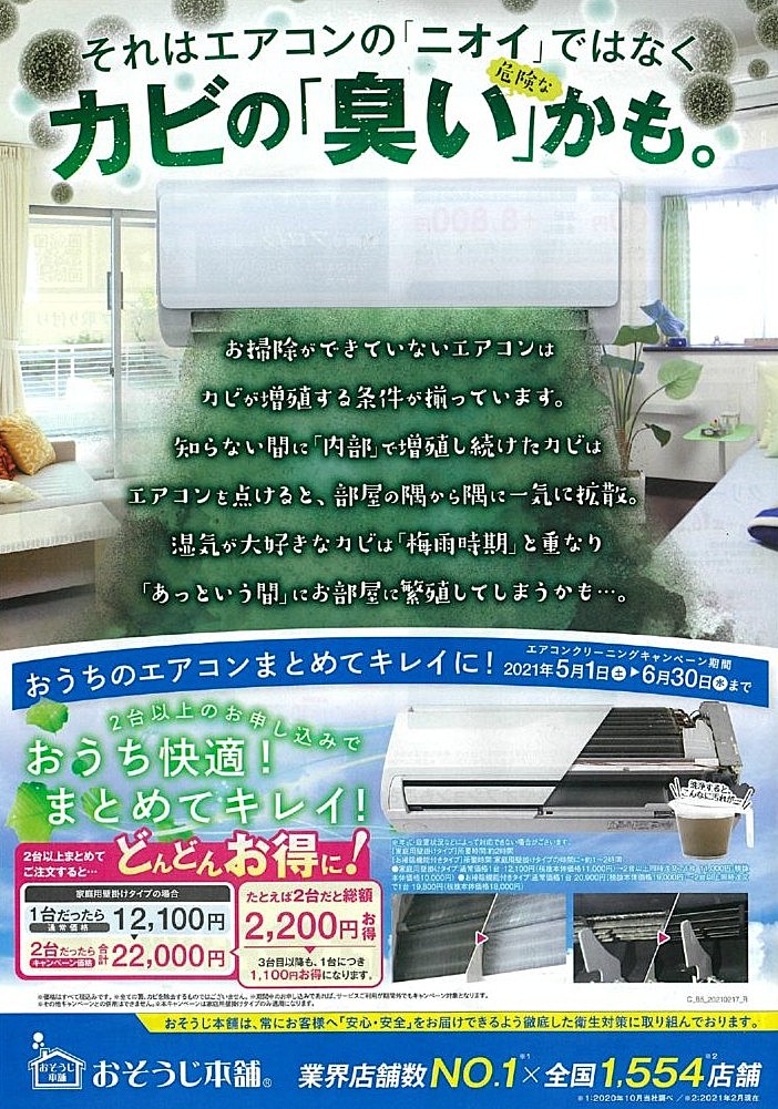 チラシ内容:エアコンクリーニング、キャンペーンのご案内