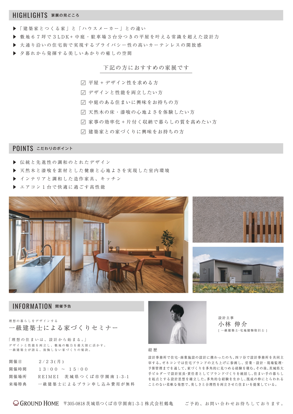 チラシ内容:完成見学会、住宅セミナーのご案内