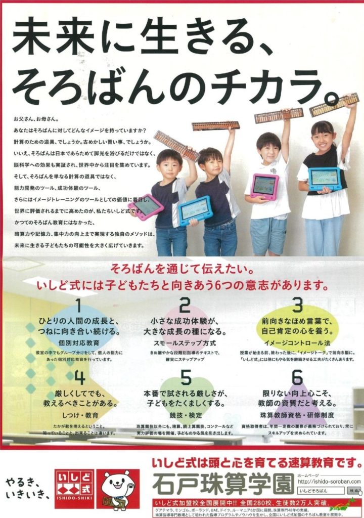 こんにちは!茨城みらいポスティングです! 守谷市でそろばん塾様よりポスティングのご依頼を頂きました! お客様のサービスのご紹介させて頂きます! 〇お客様情報(敬称略) 石戸珠算学園 住所:千葉県白井市堀込1-1-12 お …
