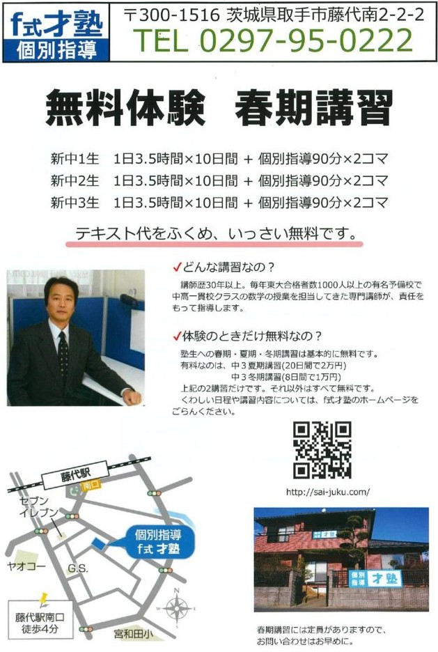こんにちは!茨城みらいポスティングスタッフです。 取手市で学習塾様よりポスティングのご依頼を頂きました! お客様のサービスのご紹介させて頂きます! 〇お客様情報(敬称略) 個別指導塾 才塾 住所:茨城県取手市藤代南2-2 …