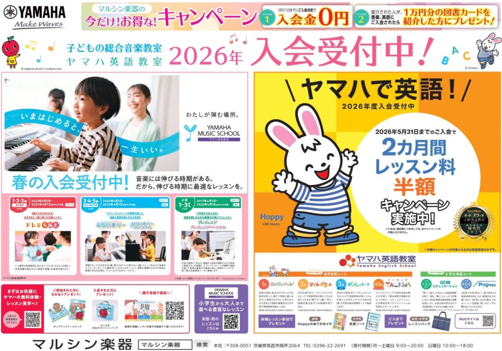 こんにちは!茨城みらいポスティングです! 筑西市で音楽教室様よりポスティングのご依頼を頂きました! お客様のサービスのご紹介させて頂きます! 〇お客様情報(敬称略) マルシン楽器 住所:茨城県筑西市岡斧2064(本社) …